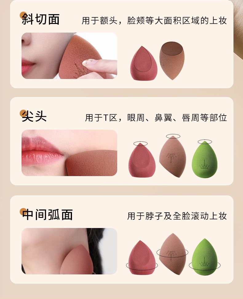 干湿两用设计:湿用可膨胀1.5倍,提升遮瑕力;干用弹性佳,适合定妆