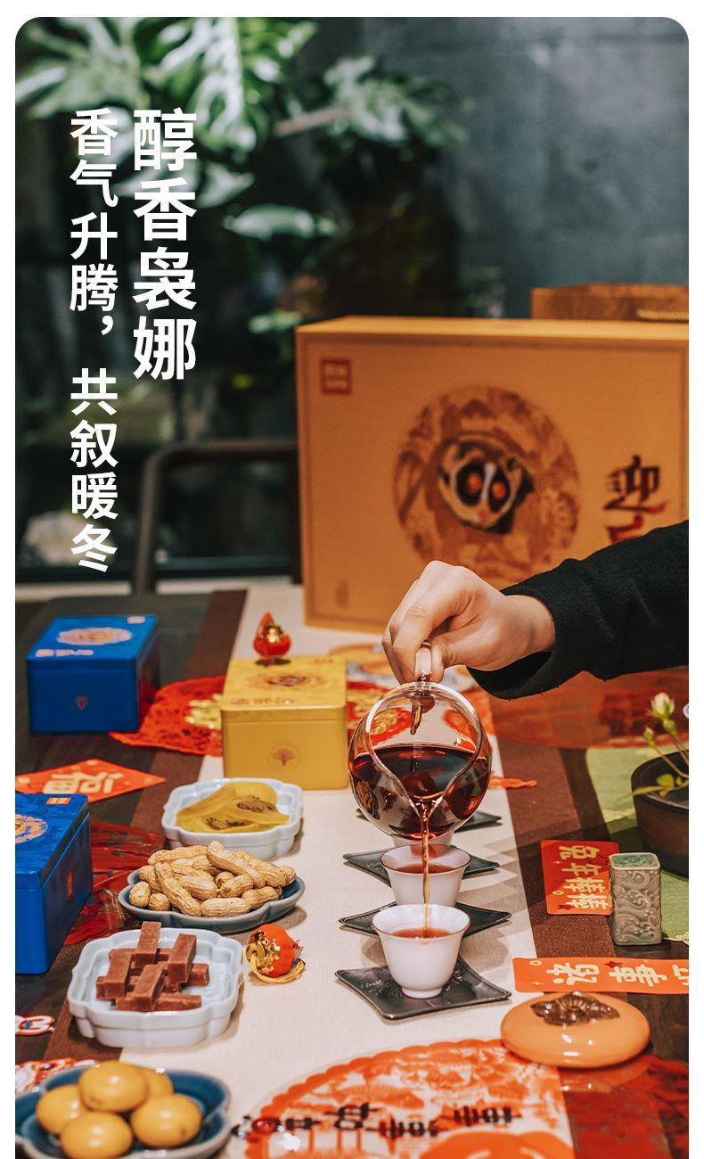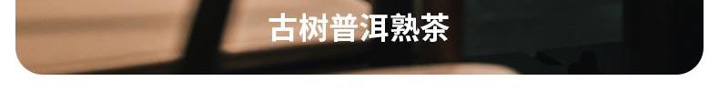 【生产工艺】 (古树普洱茶 · 熟茶) 散茶 【规 格】 50g/盒 4盒/套 【配 料】 云南大叶种古茶树晒青茶 【上市年份】 2023年 (生产日期见产品外 包装) 推荐理由: 香醇细腻, 萦绕齿间 。 茶汤褐红透亮, 激活节日氛围 。 经时间的升华, 获自然的 馈赠 。 典雅礼盒装, 贺称心如愿!