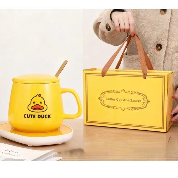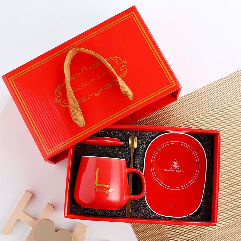 产品尺寸:285*113*184mm 产品容量:350ml 外箱尺寸:58*58*58cm 包 装:礼盒包装 产品特点: 杯子采用优质骨瓷,安全卫生、经久耐用! 设计时尚,简约而不简单。手柄采用人体工学和美学的独特设计,使用舒适、流畅! 发热垫:交流电220V,16W,保温55度以下。性能好,便于携带,是居家、旅行的好伴侣! 杯身可印上精美LOGO或图案,是各大中型企业促销赠品的佳选!