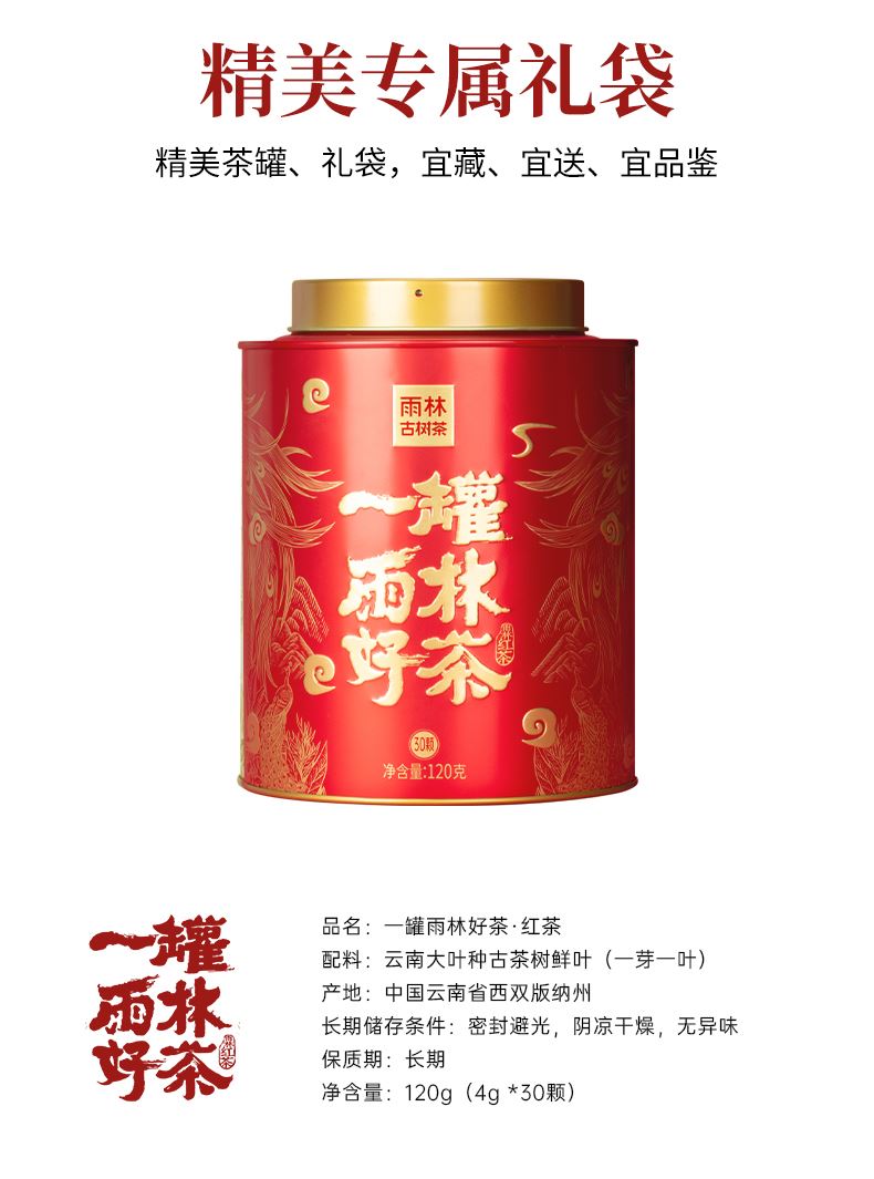 雨林古树茶2023一罐雨林好茶单罐装120g(红茶)