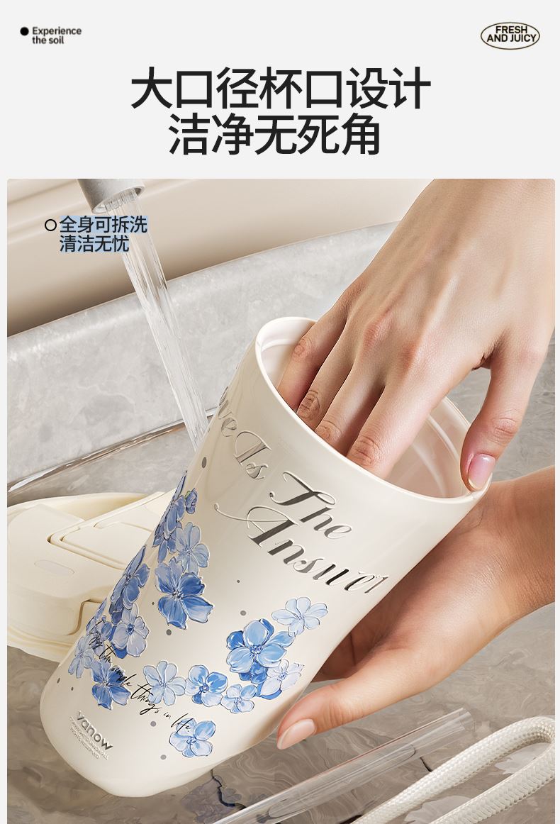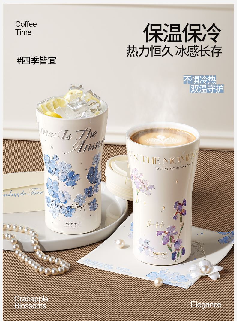 型号:VO-FHT50KF、VO-HT50KF、VO-YW50KF VO-FHT50KF-C、VO-HT50KF-C、VO-YW50KF-C 颜色:粉海棠、海棠花、鸢尾 容量:500ml 材质:326不锈钢/陶瓷、pp聚丙烯、硅橡胶 尺寸:95mm*155mm 1.多层保温守护,锁住四季温度 2.一杯三饮,闲趣自在心 3.优雅弧度,一握倾心 4.一提即走,便携新定义 5.倒置也安心,摆脱湿包烦恼