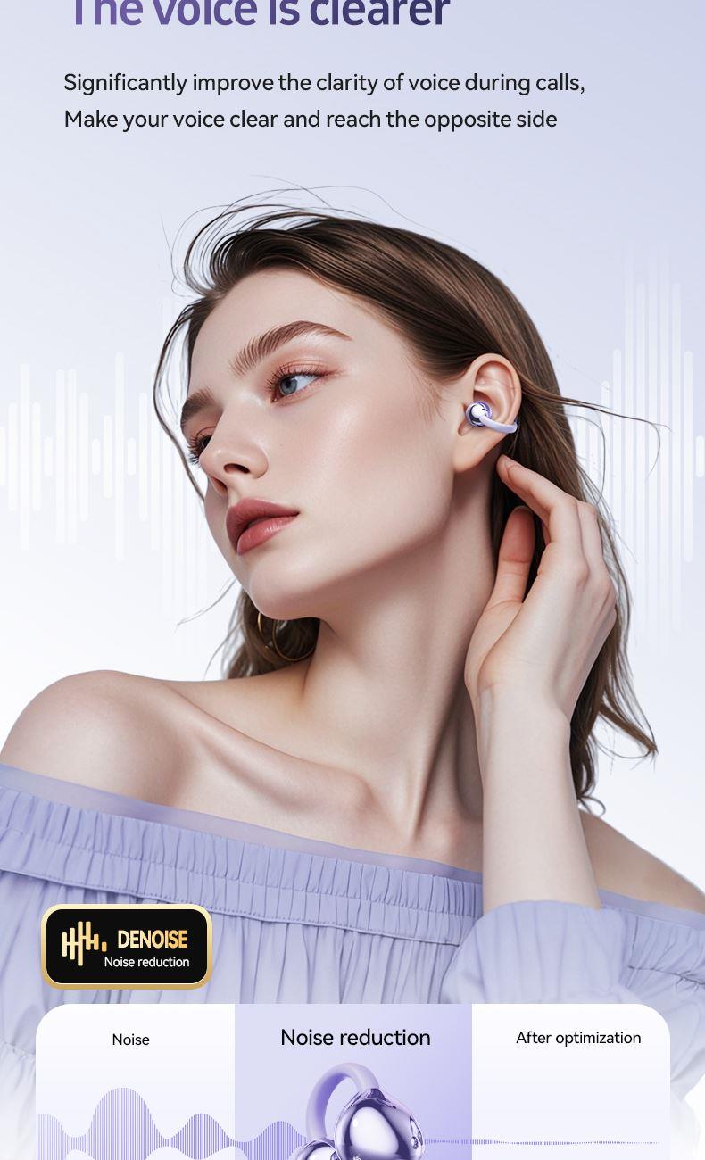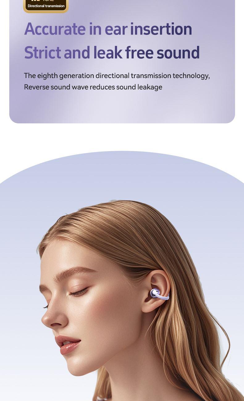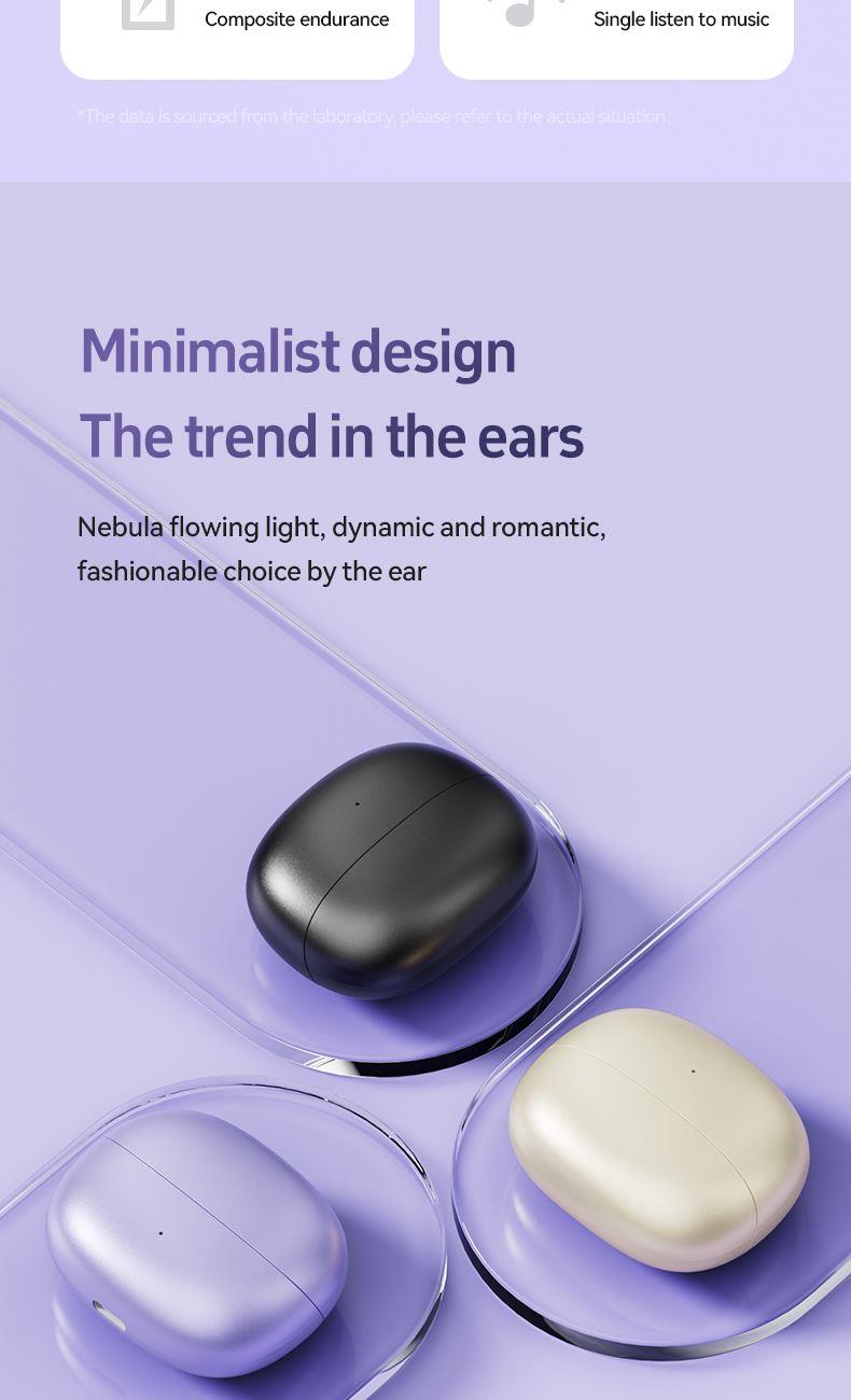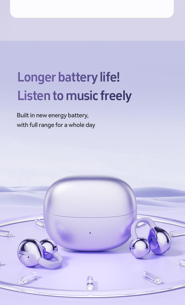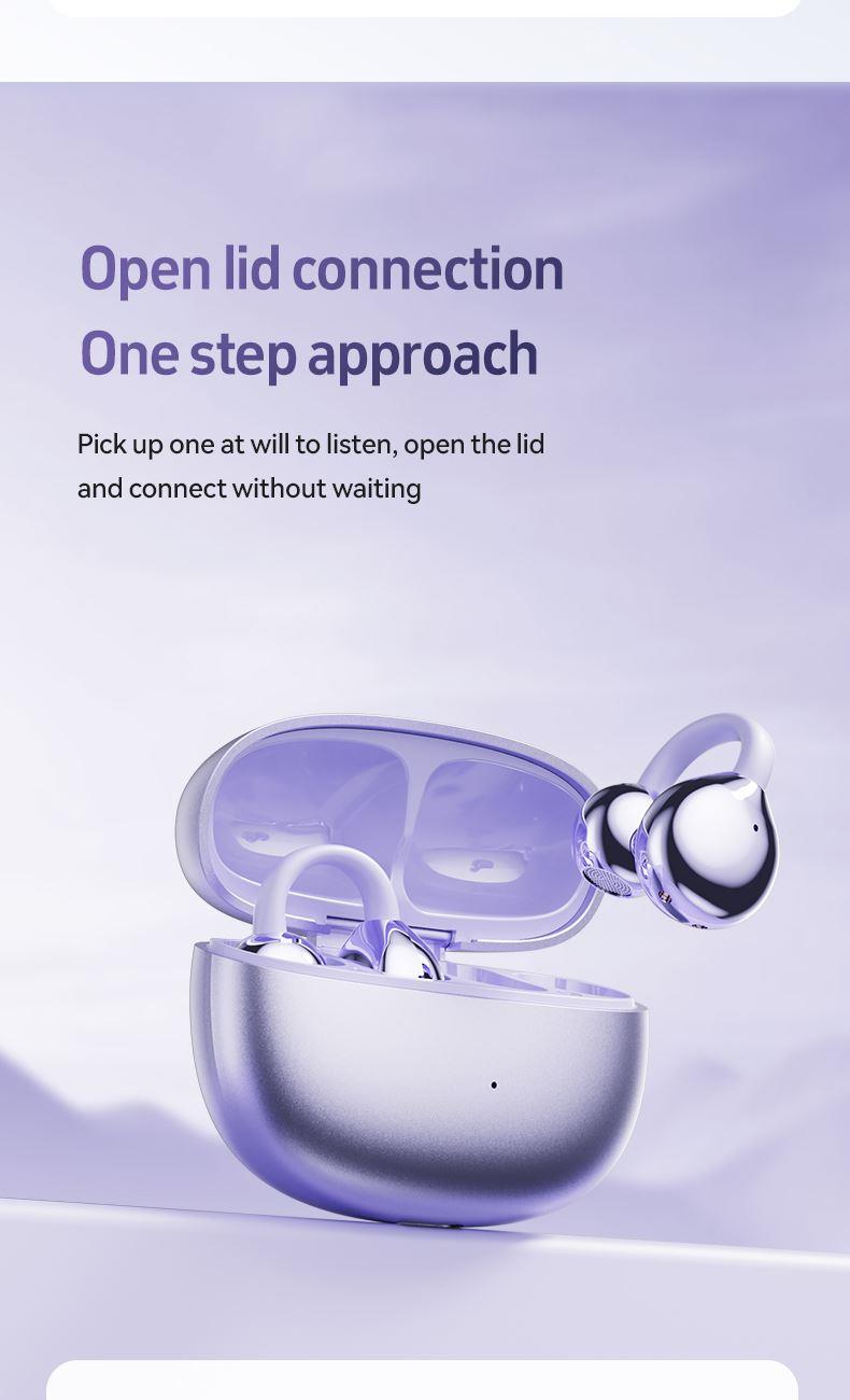 时尚电镀喷漆耳夹式耳机 型 号: M108 产品颜色:肤色、紫色、灰色 带包装重量:90.5g 外箱尺寸:158.5*37*20.5CM 整箱数量:100 PCS 整箱重量:10.5 KG 耳机尺寸:2.8*2.5*1.8CM 单耳重量:4.1g机仓尺寸:6.2*5*2.6CM 彩盒尺寸:11.5*9.2*3.6cm 裸机重量:43.59 【功能特点】: 方案:蓝讯5656C3蓝牙版本:V5.4支持协议:A2DP,AVRCP,HFP传输距离:10米 耳机电池:30毫安 401012 机仓电池:701230-230毫安 (带保护板)喇叭尺寸:F10钛合膜喇叭