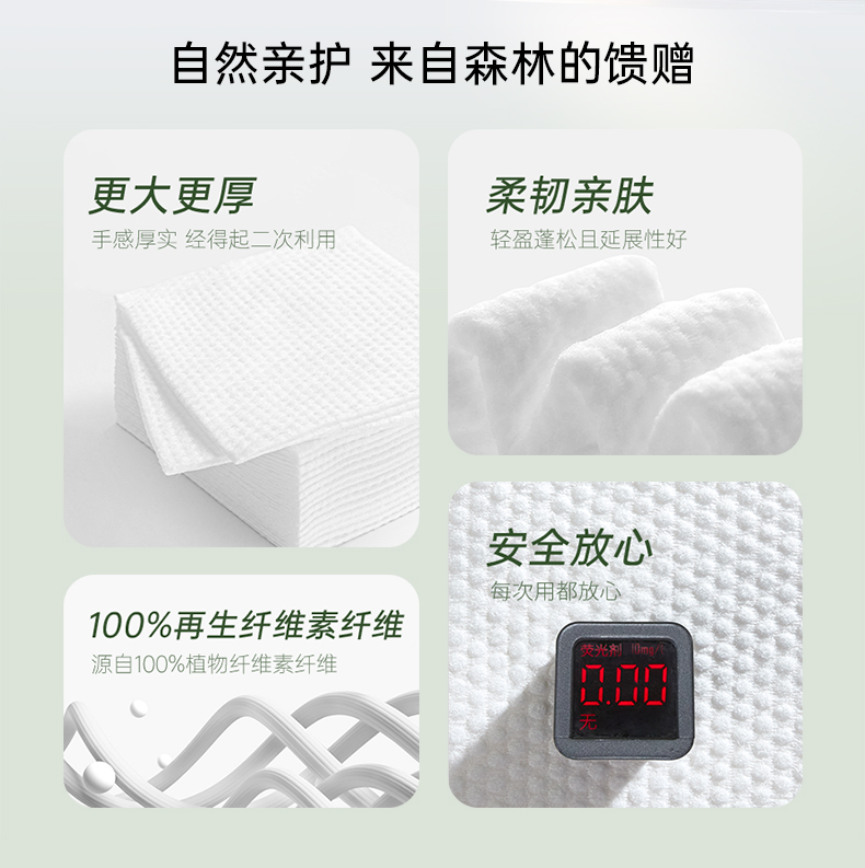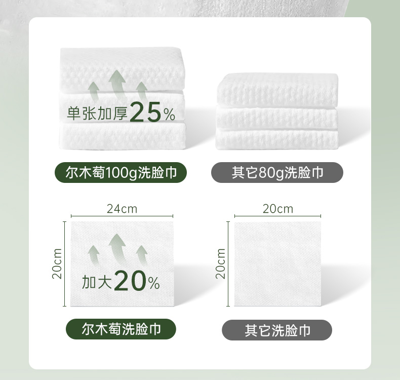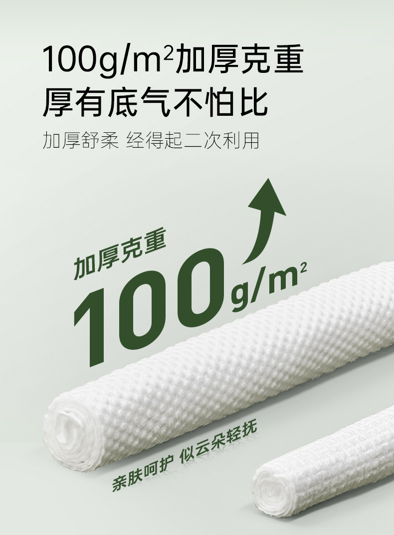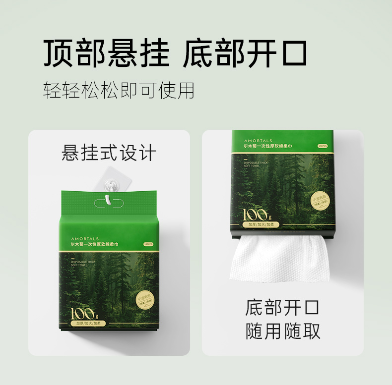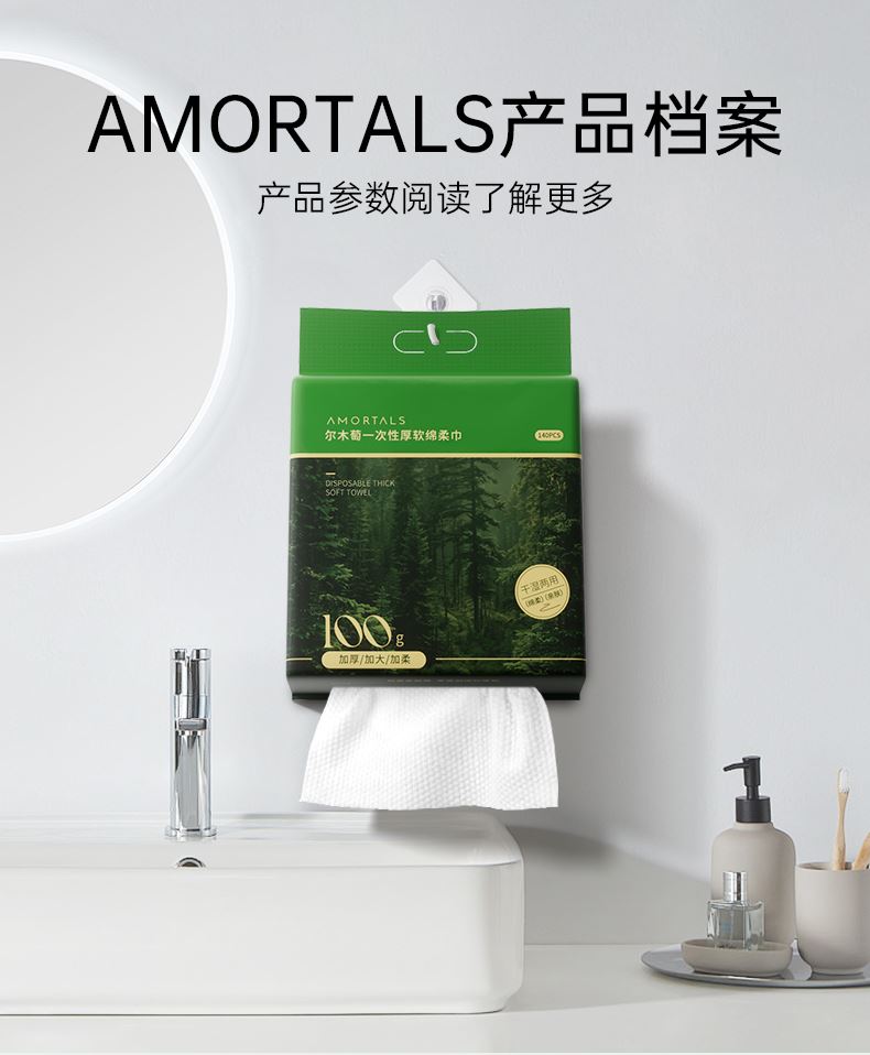 产品:AMORTALS尔木萄一次性厚软绵柔巾 材质:再生纤维素纤维 规格:20x24cm/片 100g/m2 纹理:珍珠纹+平纹净含量:140片/包 加厚100g/m²材质:厚度堪比小方巾,湿水后仍保持强韧,可擦拭3次以上不破裂 珍珠纹压花设计:凹凸表面增强清洁力,卸妆时省力50%,且触感亲肤 悬挂式便捷取用:防水背胶固定,防尘盖设计,抽取不连张,适合浴室潮湿环境 多功能使用:卸妆、洁面、擦镜台均可,敏感肌友好无荧光剂