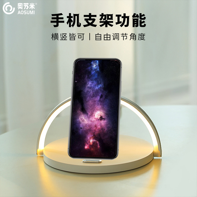 无线充手机支架小夜灯S21 颜色:白色 木纹色+4元 色温:3500K暖白 材质:ABS 灯珠:36颗/2835 产品尺寸:191*203*13mm 包装尺寸:213.5* 38.5 * 226mm 包装:彩盒包装 【功能特点】: 15W手机充电 可当手机支架 触摸小夜灯 可三档调节亮度 可大面积UV彩印客户logo 温馨暖光灯不伤眼睛
