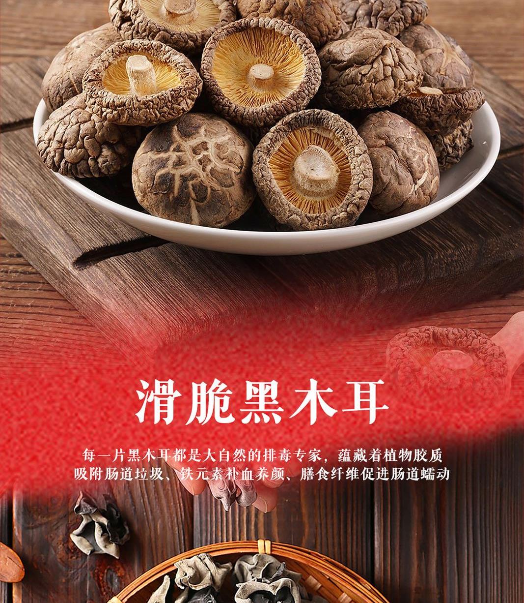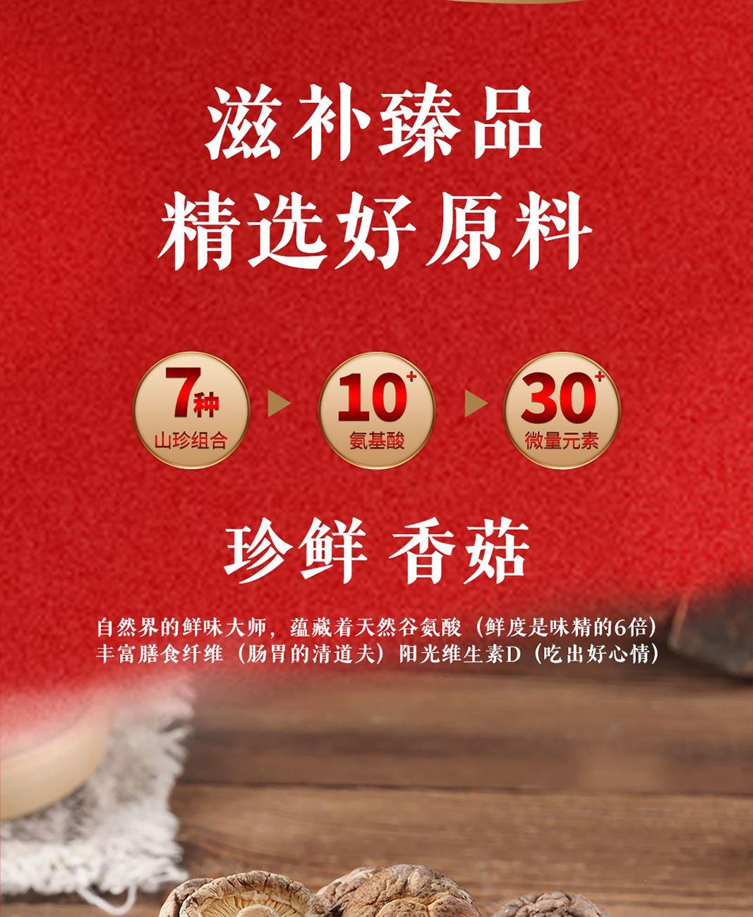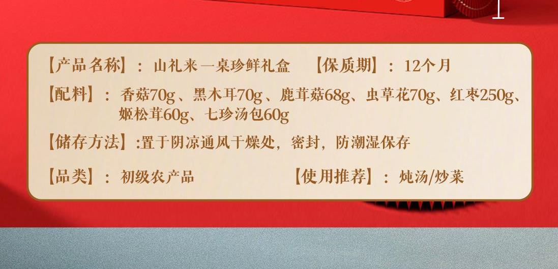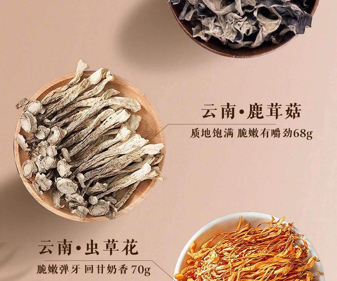 配置:姬松茸60g、香菇70g、黑木耳70g、鹿茸菇68g、虫草花70g、红枣250g、养生汤包60g 商品规格:648g/盒 产品尺寸:350*300*130mm 保质期:12个月 京东自营旗舰店销量好评1w+,源头工厂,支持项目授权,项目保护。