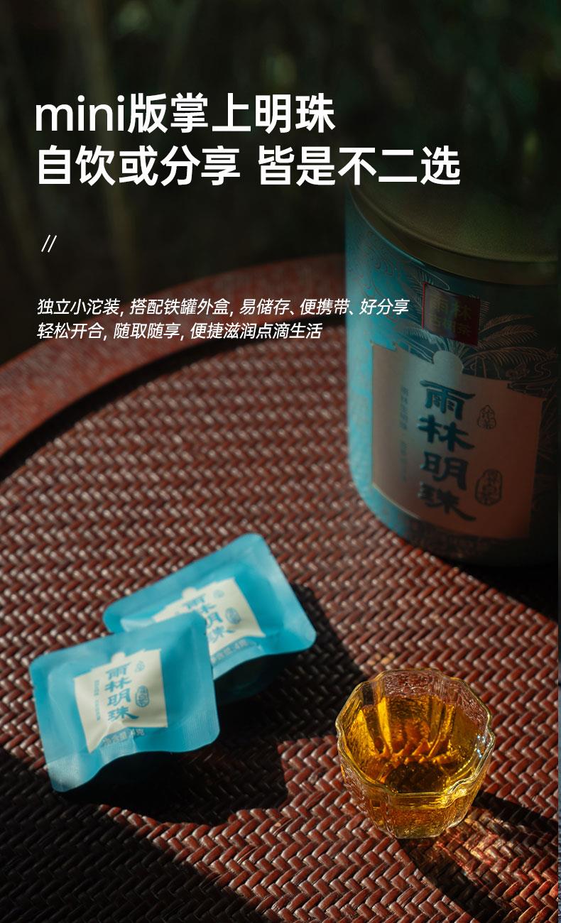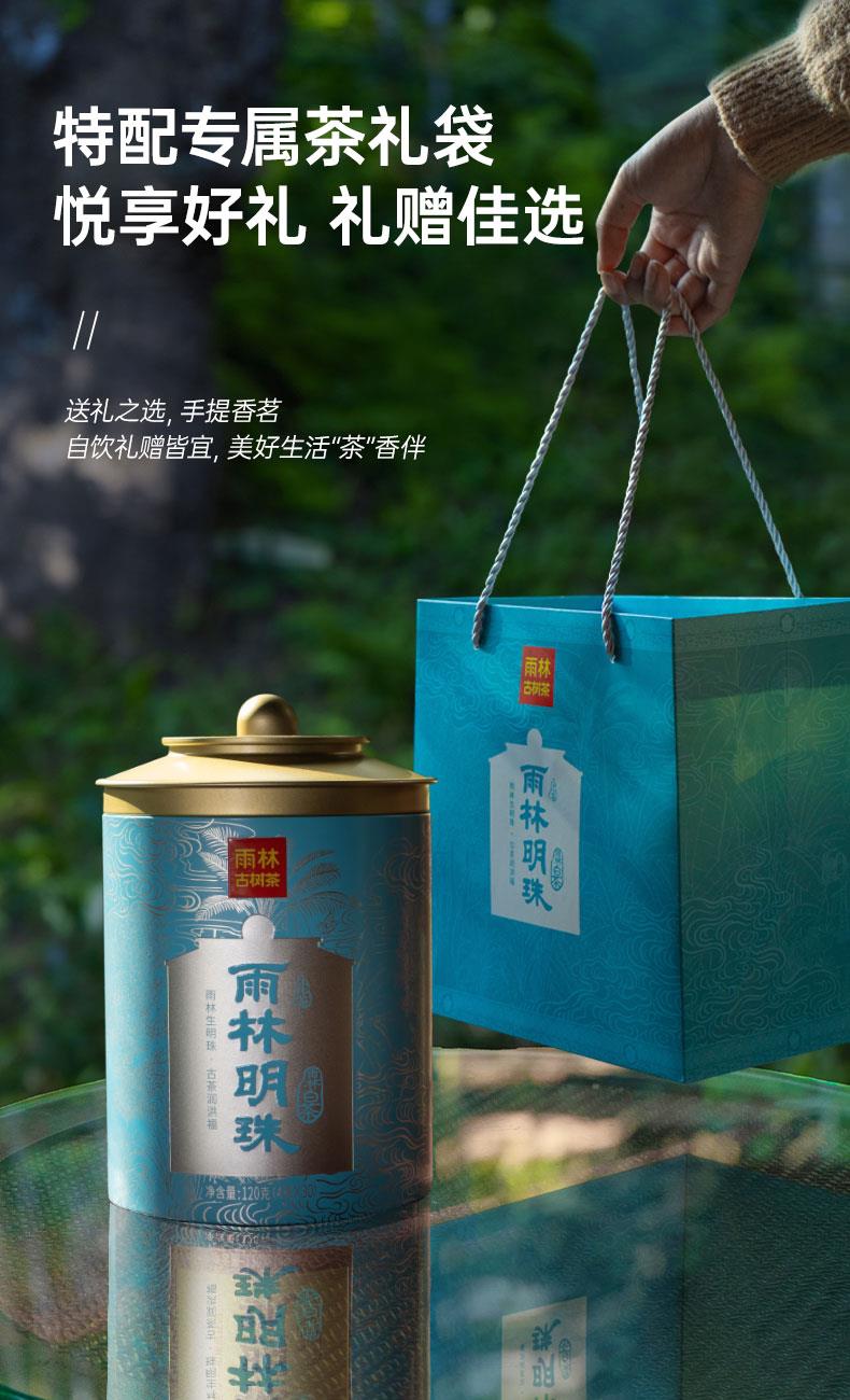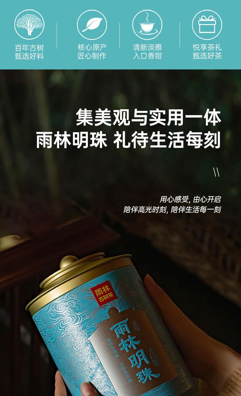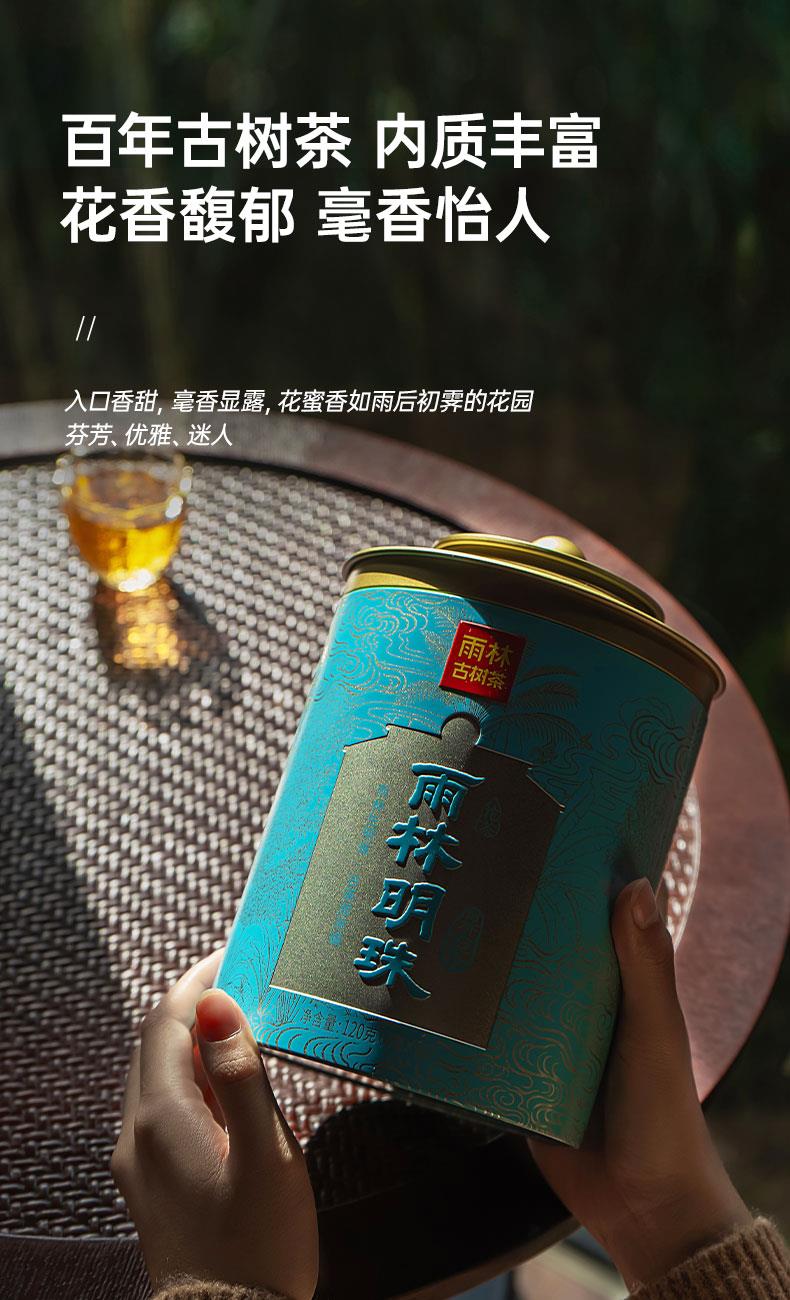 【生产工艺】 雨林白茶·紧压茶 【规格】 4克/沱 120克/罐 【配料】 云南大叶种古茶树鲜叶( 一 芽二叶) 【上市年份】 2024年 (生产日期见产品外包装) 推荐理由: 雨林明珠, 古茶润福 。 雨林明珠·白茶, 入口香甜, 毫香显露, 如逢雨后初霁的花 园 。 独立4克小沱装, 便携易泡, 是自饮或 分享的不二之选 。 活泼蓝罐, 让储存更简 单 。