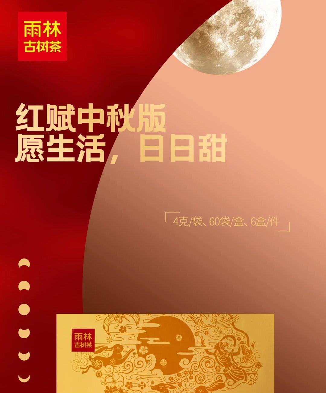 【生产工艺】 (古树红茶) 散茶 【规 格】 4克/袋 60袋/盒 【配 料】 云南大叶种古茶树鲜叶 【上市年份】 2024年 推荐理由: 红赋盈门, 呈东方礼赞! 甄选一芽一叶古树茶, 鲜明金毫, 芽叶 匀整 。 蜜意浓香藏内质, 红玉流光味甜醇 。 仿圆月设计, 意蕴圆满 。 精致小袋享便捷, 自品送礼两相宜 。 红赋, 为佳节添彩增福 。