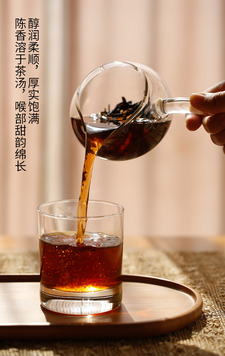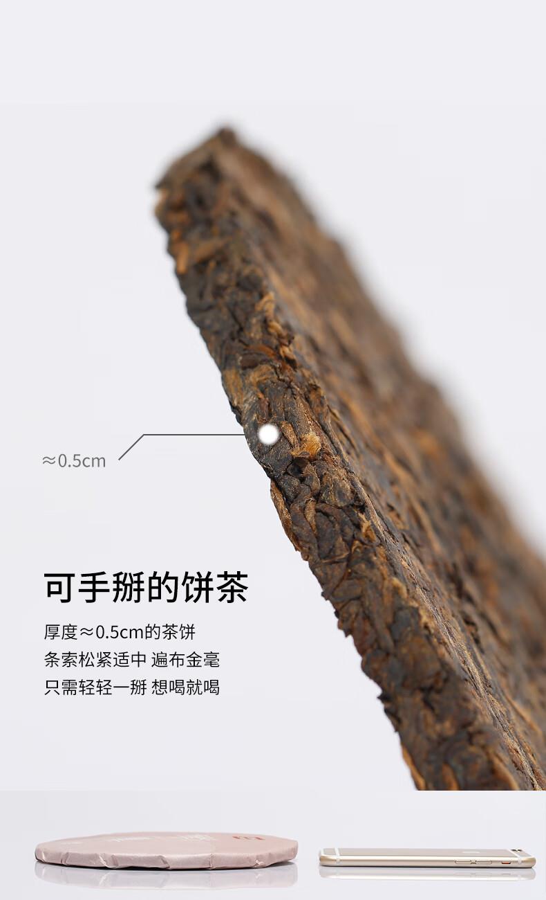 【生产工艺】 古树熟茶 【规 格】 160g 【配 料】 云南大叶种古茶树鲜叶 【上市年份】 2017年(生产日期见产品外包 装) 推荐理由: 蝉翼焕金装 一掰见真香, 薄如蝉翼! 厚度≈0.5cm的茶饼, 松紧适度, 一掰就开 喝! 8年陈化, 蝉翼熟茶: 糯滑如绸 陈韵 入骨) 金装升级! 焕新鎏金礼盒, 让茶叶 自带高光时刻!