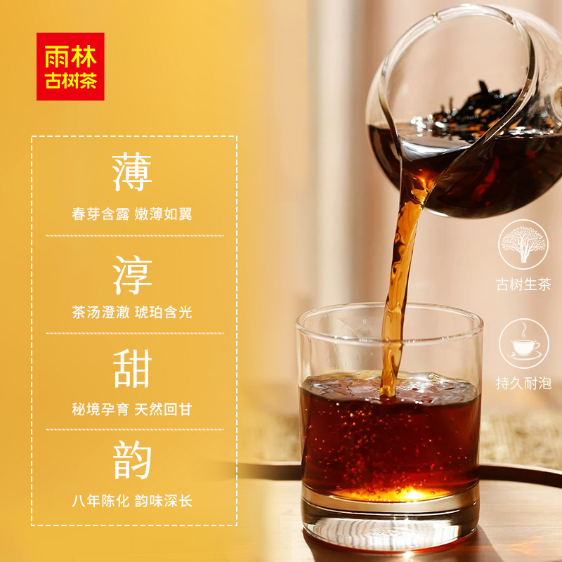 雨林古树茶2017蝉翼8年陈茶生普饼茶熟茶160g
